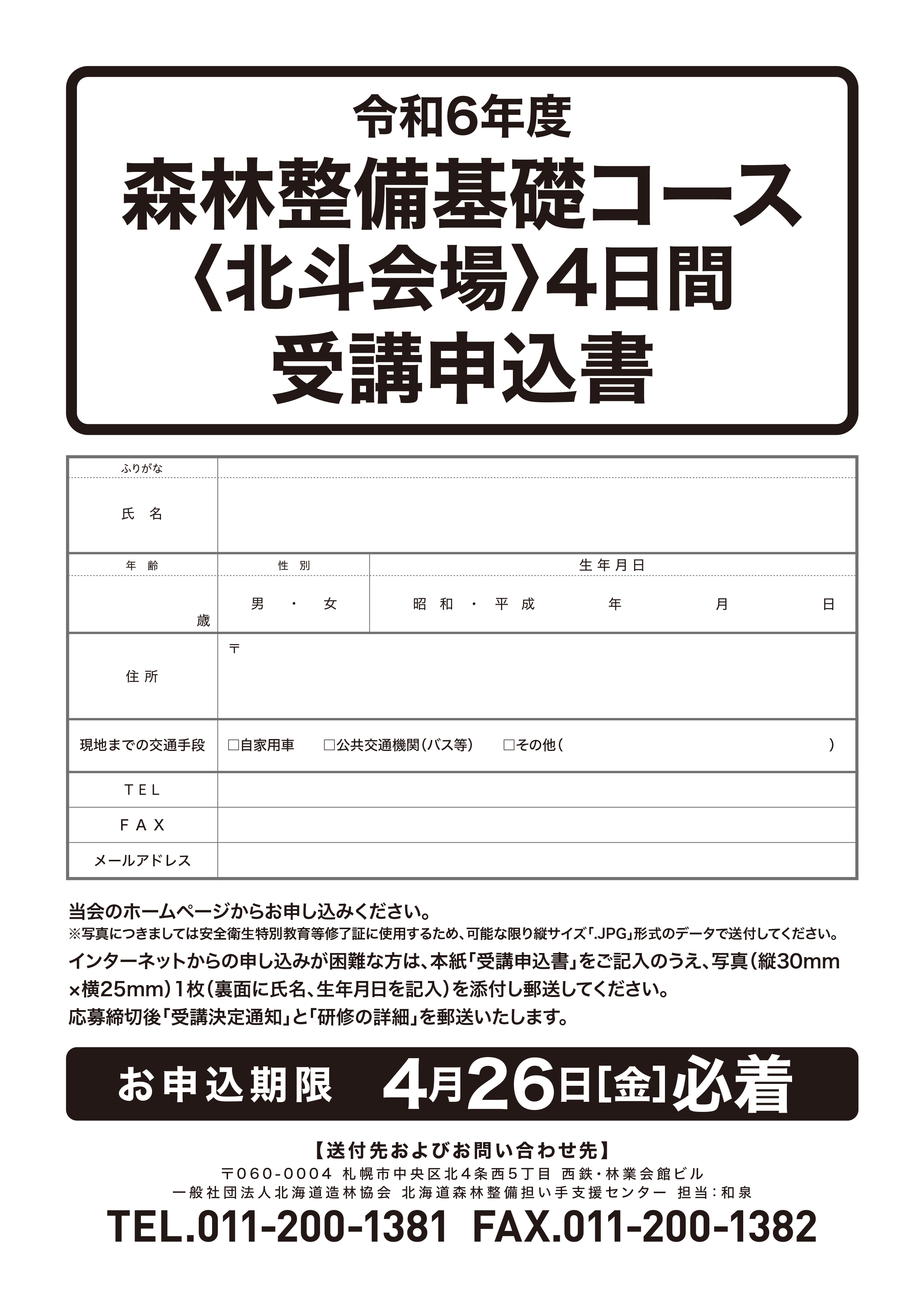 令和6年度「森林整備基礎研修<北斗会場2024.5.14~5.17>」開催のご案内